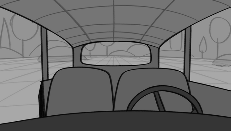 To prepare for the creation of this simple shot I used Clip Studio Paint to adapt the script provided into a quick storyboard, made a few sketches of the main character in different angles to use as a reference sheet, and created "animatic style" backgrounds for the creation of the scene.